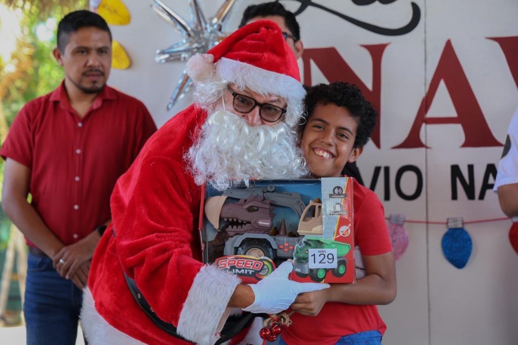 Como parte del convivio, se realizó una entrega simbólica de juguetes con la participación de autoridades y niñas y niños beneficiarios: Tonatiuh Oliveros, Aris Lizet, Roni Hernández, Kiara Garduño, Camila May y Britana Luna, en un momento lleno de emoción que incluyó la llegada de Santa Claus, provocando aplausos y sonrisas entre las y los asistentes.