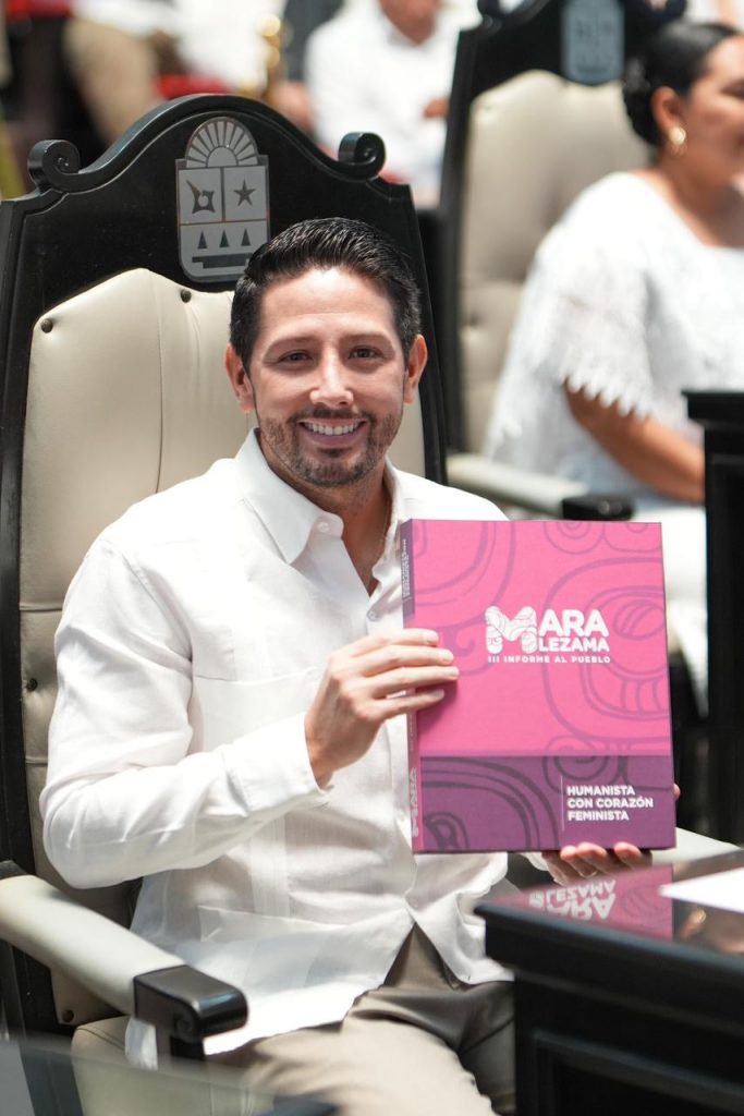 Lo anterior, en el marco de la sesión solemne, donde la XVIII Legislatura recibió el Tercer Informe de Gobierno de la gobernadora Mara Lezama Espinosa, documento entregado por la secretaria general de Gobierno, Cristina Torres.